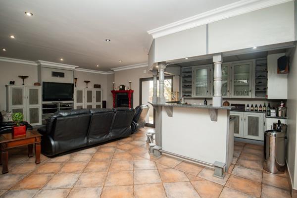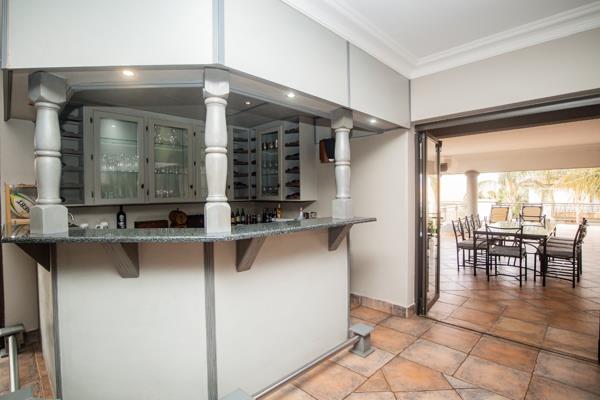 Adjacent to the kitchen, the formal lounge opens up onto the jacuzzi room, offering breathtaking views of the dam. Step outside onto the expansive covered balcony, which features a built-in braai area, dining space, and lounge area with plush chairsa true entertainer''s paradise that offers ample space for relaxation and hosting guests.