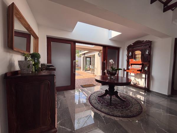 The interior of this home is thoughtfully appointed, featuring a well-proportioned lounge, a dedicated dining room, and an additional family TV room, providing ample space for both formal entertaining and relaxed family gatherings. The modern kitchen is equipped with a practical scullery, ensuring efficiency and convenience in culinary pursuits. Climate control is seamlessly managed throughout the residence with the inclusion of air conditioning, enhancing comfort across all seasons. The layout promotes a harmonious flow, creating an inviting atmosphere for residents and guests alike.