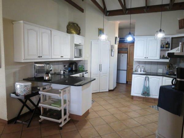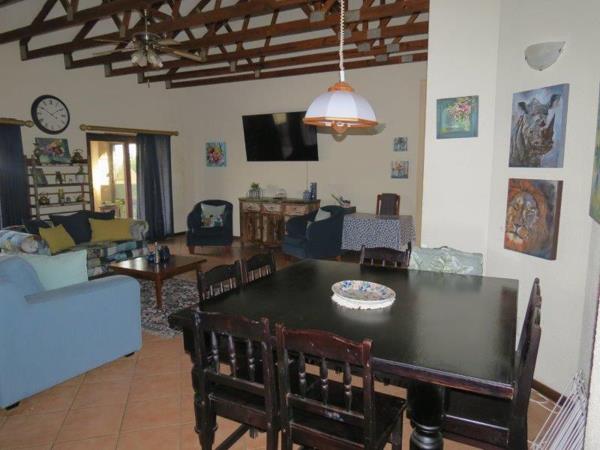The open-plan layout features a modern kitchen with a separate scullery with a built-in water purifying system, seamlessly flowing into the dining area and spacious living room. The lounge is fitted with an air conditioner and a built-in fireplace for cosy evenings. Large sliding doors open from the living area to an enclosed balcony with panoramic dam viewsideal for entertaining with its built-in braai.
