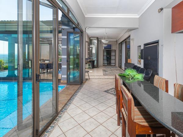 Stacker doors from the lounge open to a spacious entertainment area featuring a built-in braai, pizza oven, bar, and a seamless flow to the sparkling blue pool the perfect setting for family gatherings or weekend get-togethers.