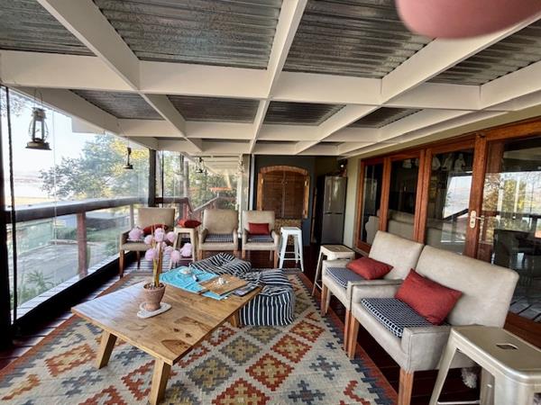 The house offers 4 spacious bedrooms. The master bedroom has an spacious en-suite bathroom. Two of the other bedrooms open up onto a shared deck overlooking the dam. The open plan kitchen and living area are modern, elegant which includes a fire place in the living area for those cozy Winter days. the kitchen has a pantry and scullery to cater for all your needs.