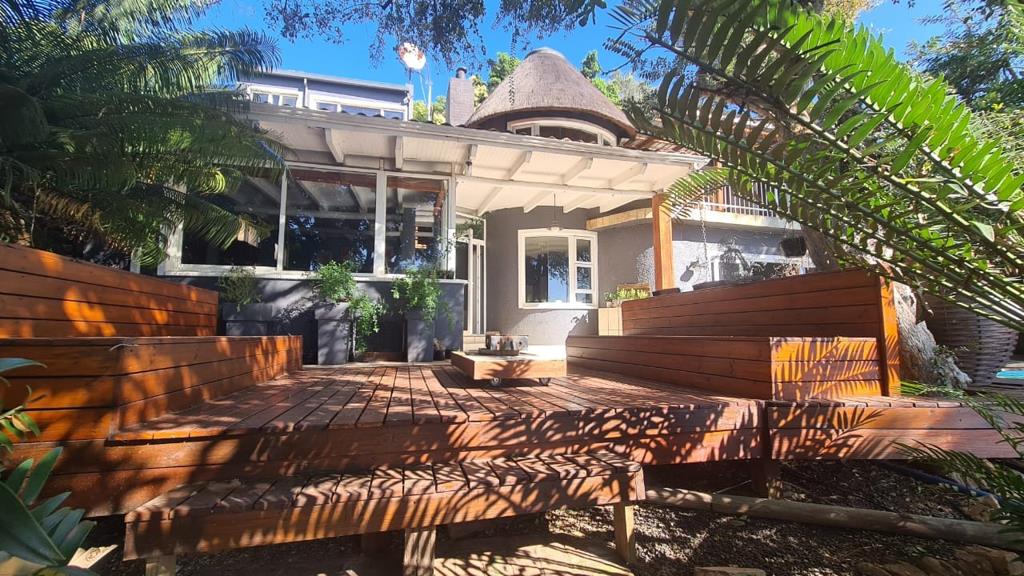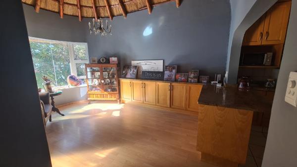 The well-thought-out garden beneath the pool has a thatched lapa, which enhances the ambience and is also a good use of space. As you sit by the lapa looking towards the house, you can zoom in on the house''s architecture and your appreciation is complete.