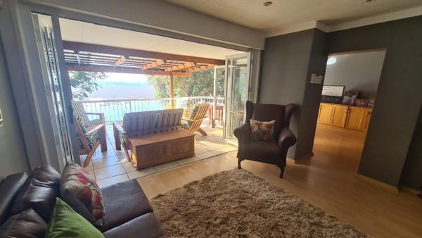 At the lower ground level, via the steps, we have another completely self-caring living space with all you need in a house. It comprises one bedroom ensuite with an outside entrance, amazing dam views, a kitchenette, lounge and dining areas. This lower level also comes with an infinity swimming pool that when you are sitting in the lounge looking towards the direction of the pool, Harties dam and the pool become one beautiful intertwined volume of water that invites you to stare into eternity. Around the pool area is beautiful decking wherein you can sit around and entertain, watch the sunrise and enjoy the midday sun.