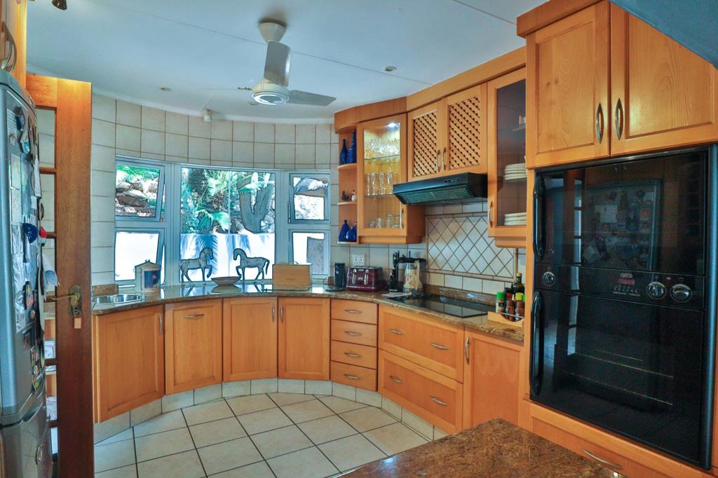 On the lower level you have a small kitchen, dining room, bedroom, bathroom, pajama lounge and a view over the pool area and dam.