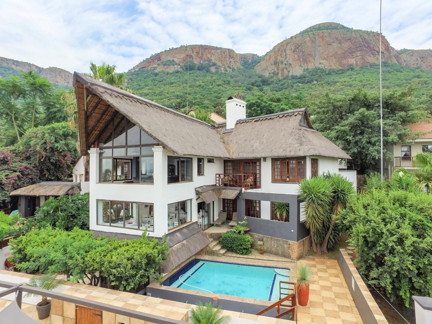 Set against the magnificent Magaliesberg mountain range, this extraordinary home commands uninterrupted views across the Hartbeespoort Dam. Situated in the exclusive village of Kosmos, the property offers an unparalleled blend of elegance, comfort and timeless charm.