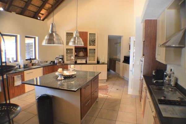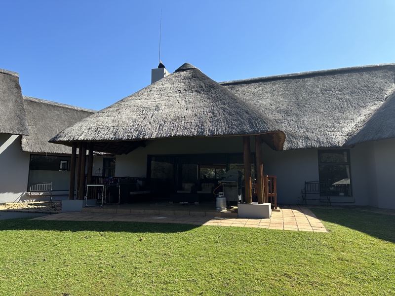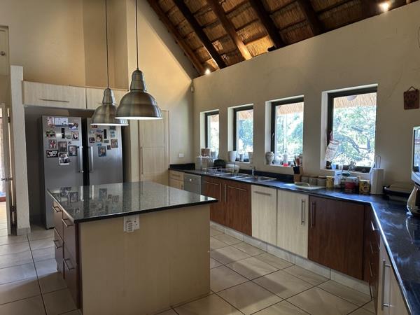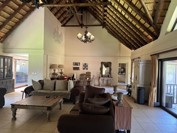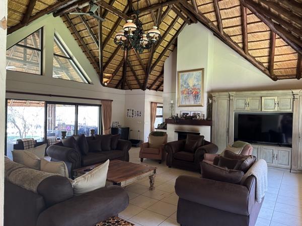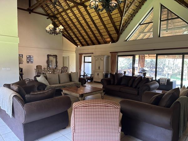 Set on 10 000 m2 stand with river frontage, the manicured lawns lead to a boma, a play pen and a brand new pool. The home has its own water tanks, a generator and fibre.