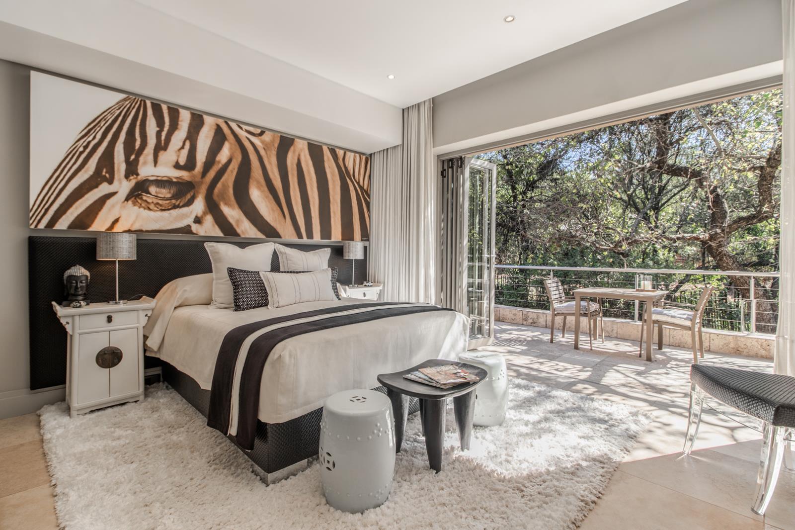 The main house features 3 bedrooms on the top floor, all of which are en suite and designed with their own unique style and feel. Each bedroom has a feature wall, luxurious bathrooms, and a balcony with breathtaking views of the surrounding landscape. The main bedroom is truly exceptional, featuring a full en suite bathroom, a scenic bath overlooking the greenery, and a ''must-see'' walk-in closet with his and hers spaces and massive shoe storage.
