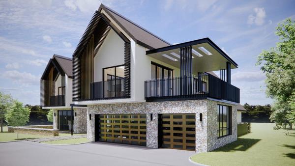 A stunning skybridge leads to the upper level, where you''ll find a pyjama lounge, a luxurious master en-suite bedroom, and two additional en-suite bedrooms, each with a private balcony. The current design includes three car garages with extra headroom for a caravan or boat, with optional additions of three more garages, an off-grid solar system, and staff quarters.
