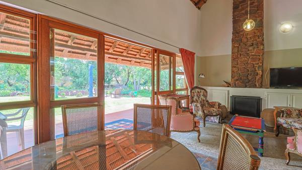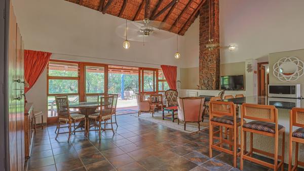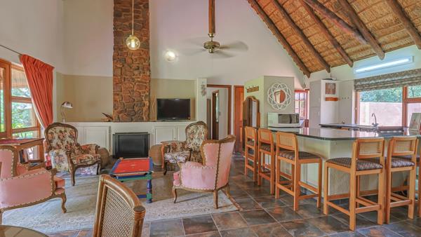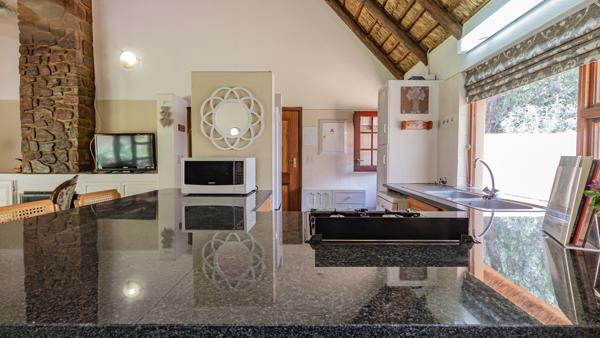 The boma, braai completes the weekend breakaway from the stress of everyday life! Glorious open plan living with a fire place and suspended ceilings fans. Kitchen with under counter electric stove and gas hob.