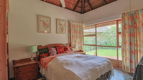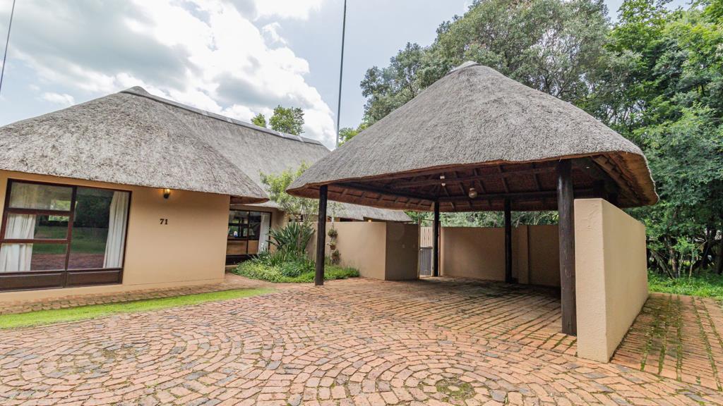 As you drive into road 8, unit no 71 stands alone, surrounded by natural bush. The double car port beckons you in! It is a completely private retreat, topped with the Estates signature thatched roof. This single storey getaway has slate tiles throughout, navy and earth hues that sets the tone of peace and tranquillity!