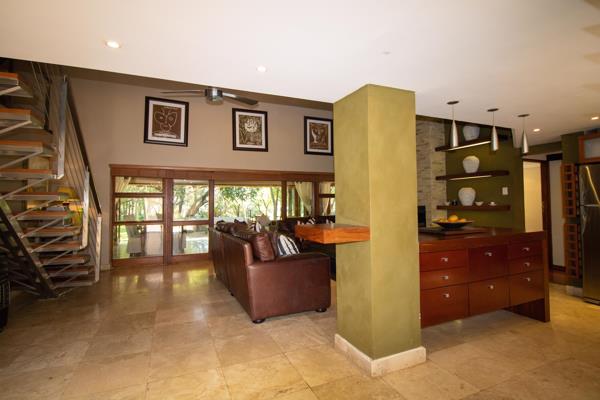 Stylish Home Set Amongst Lush Gardens. This stylish home is in a class of its own. Set amounts the lush, beautiful gardens of Lakeland Estate with a view of the Dam.