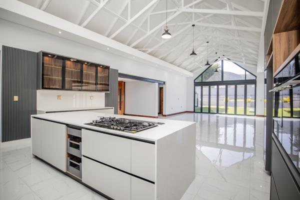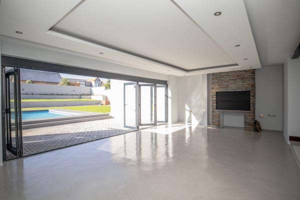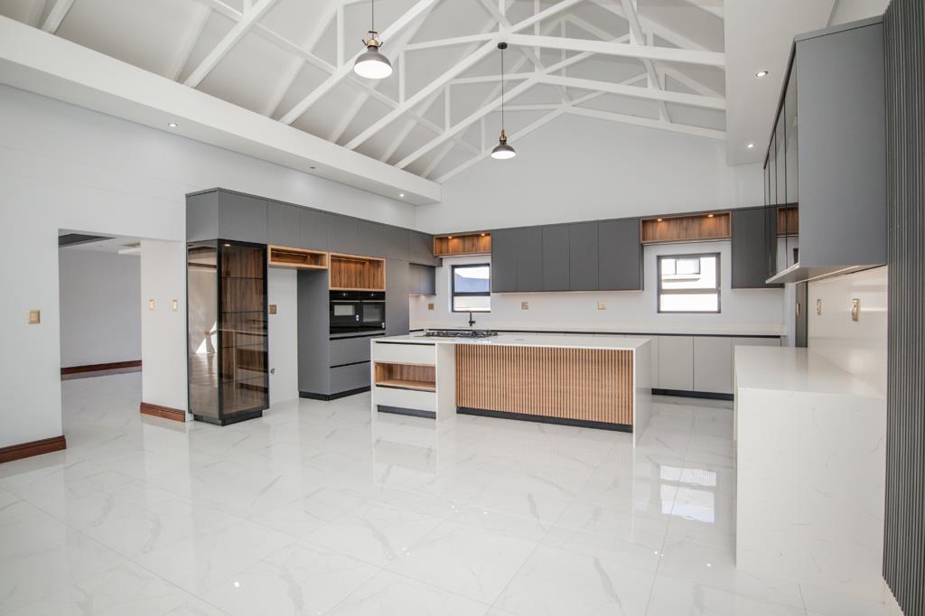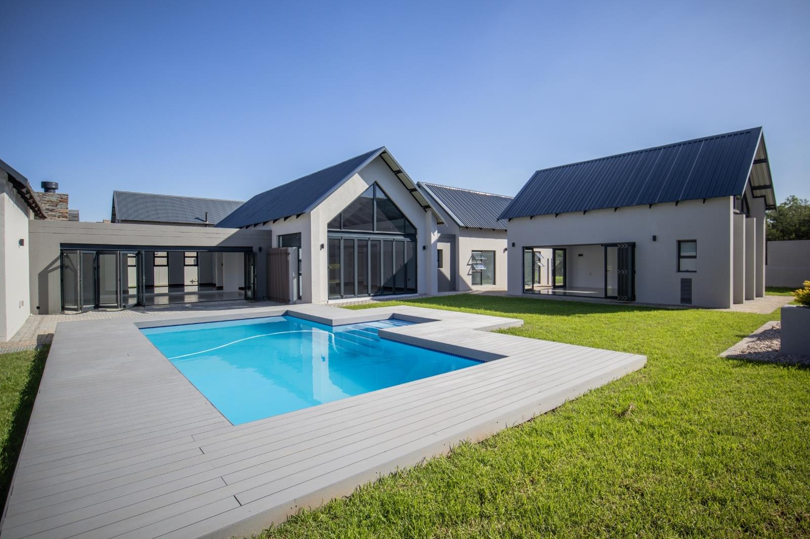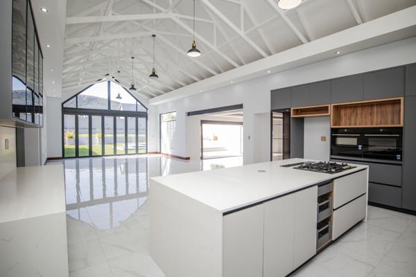 Perfectly positioned on a prized double stand in the tranquil Leloko Estate, this brand-new 5-bedroom single-storey home is a harmonious blend of sleek modern design and warm, inviting comfort. With an expansive open-plan layout and luxurious finishes throughout, it offers the ideal backdrop for both lively gatherings and peaceful retreats. Three en-suite bedrooms provide private havens, while additional rooms offer versatility for family or guests.