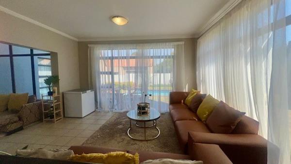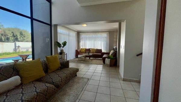 This engaging space is suitable for both family life and entertaining, effortlessly connecting to a spectacular braai area, ideal for hosting parties and making lasting memories. There is a stunning pool next to the braai area where you may unwind by the water or take cool swims on hot summer days while enjoying the seclusion of a well-kept garden.
