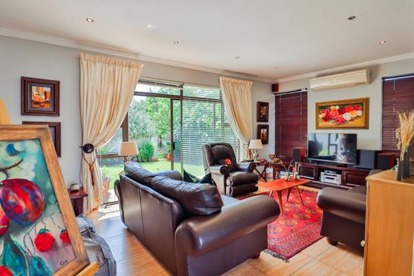 The property is situated on a pan handle, and is adjacent to a green belt. The master suite is private and offers exceptional cupboard space. The en-suite bathroom is spacious with high end bathroom furniture. All bedrooms and lounge are fitted with aircons. Lovely established garden with pool.