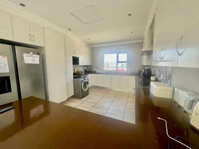 Step out onto the open patio and be greeted by picturesque views of the greenbelt, where game roam freely. The lush garden provides ample space to create your own private oasis, complete with a refreshing pool. The covered patio, featuring a built-in braai, is perfect for hosting gatherings and enjoying the beauty of nature while dining al-fresco.