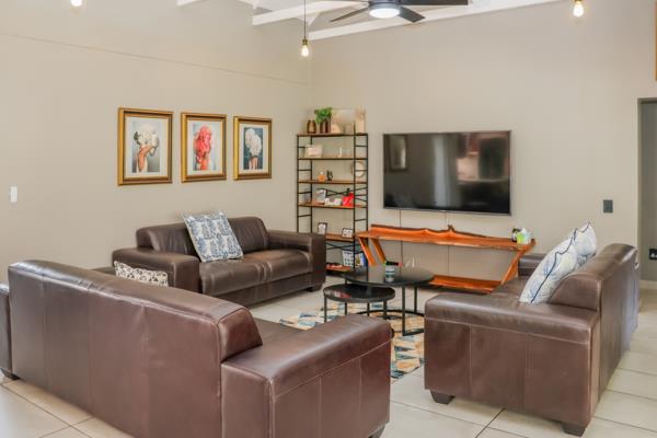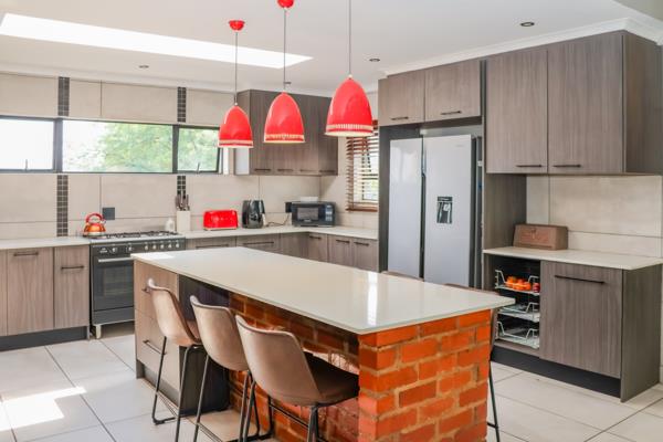 Modern Family Home. This spacious home offers modern finishes, and a sanctuary within an eco-lifestyle estate. The open living area hosts the living room, dining room and a large kitchen. With a centre island, ample cupboard and surface space, the kitchen is a playroom for cooking and entertaining. Stack doors open to a tranquil outdoor entertainment area, with a covered patio and swimming pool.