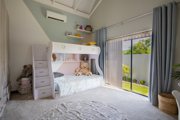 Practicality and comfort abound in this home, with every bedroom equipped with air conditioning and underfloor heating. A separate helpers quarters with full facilities ensures convenience, while the double garage houses a robust 15kVA Sunsynk solar system, keeping your home powered and eco-friendly. The property is neatly paved throughout, adding to its polished appeal.