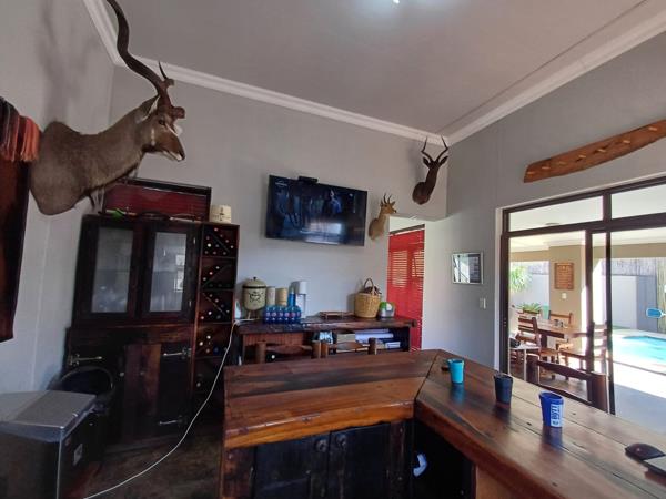 The house is located in a breathtaking nature estate with beautiful animals roaming around the estate. The house has a swimming pool, air-conditioning and a Bar for your relaxation. It is situated in a tranquil side of the dam for all the peace and quiet you need.