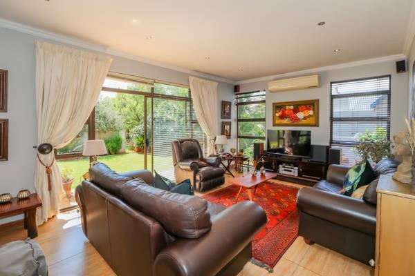 Perfectly located next to the swimming pool, a braai room with sliding doors leads out to the garden. Four sunny bedrooms are on the top floor, each with an air conditioner. The double-volume main bedroom has an en-suite bathroom, ample cupboards and a balcony. The other three bedrooms share two full bathrooms, while bedroom 4 also features a balcony.