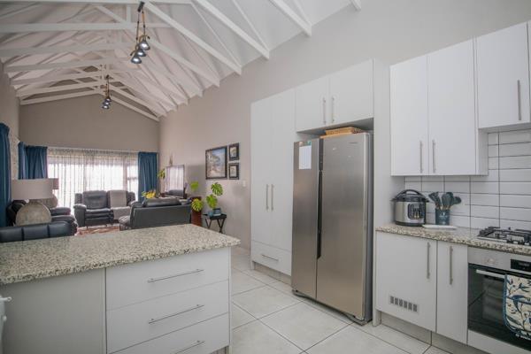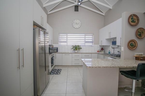 This superb two bedroom, two bathroom sectional title unit has a light and airy open plan living area with sliding doors leading onto the covered patio and garden. The high ceilings throughout the home further add to the feeling of spaciousness. The laundry area in the garage is set up to accommodate both a washing machine and tumble dryer that leads out to a small enclosed courtyard. Garage has direct access to the home.