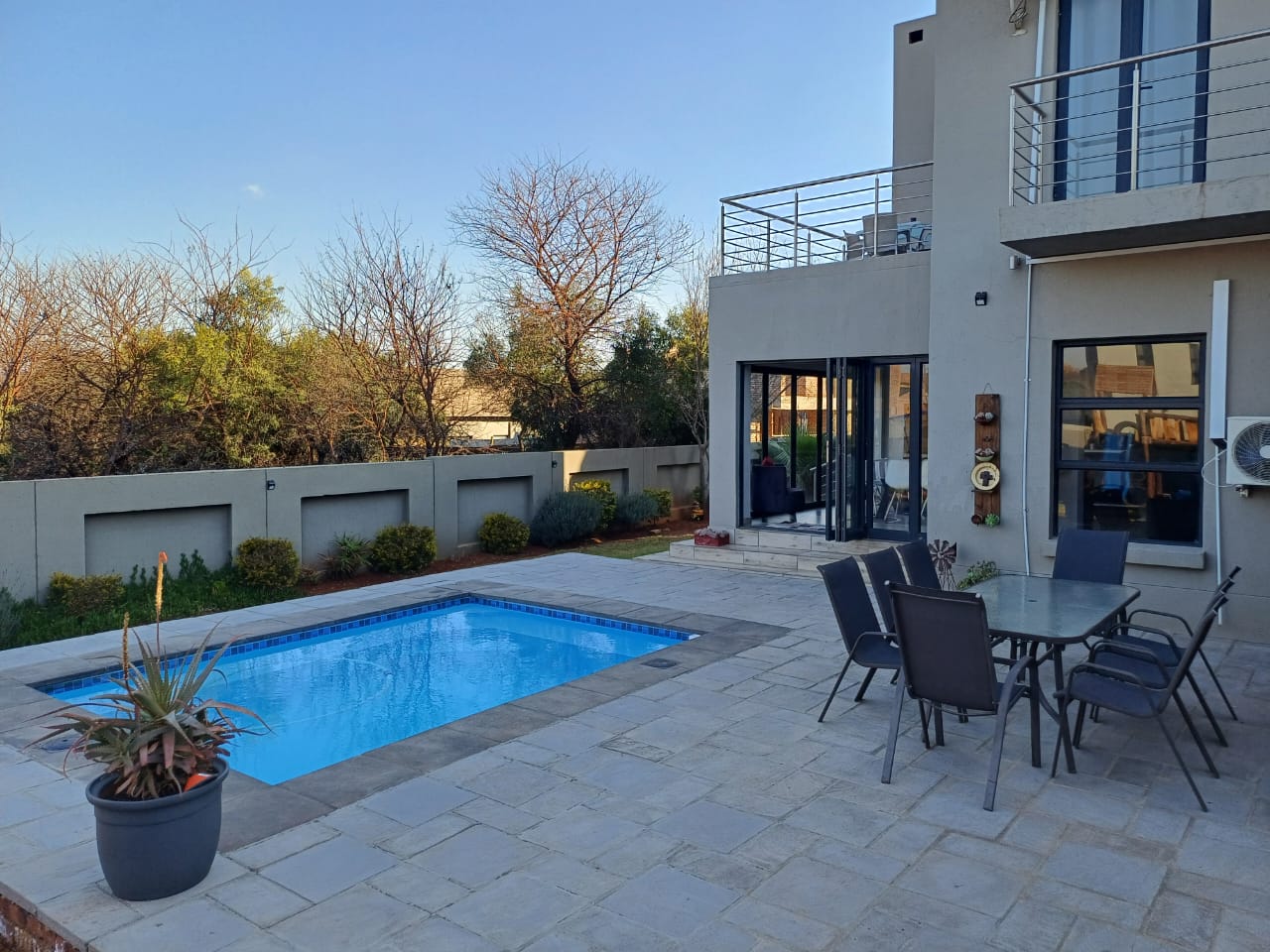 Own a Beautiful Family Home in a mint condition with all the amenities, with Scenic views of the Majestic Magaliesberg and Witwatersrand Mountains. Positioned North facing in a Cul de sac street. The lower level presents an Open Plan Lounge, Dining and Kitchen , with an Open plan Leisure area with endless possibilities. The Sunny Upper Level consists of a Main en suite Bedroom with 180 degree views of the escarpment leading on to a Huge Balcony. 2 Bedrooms with bathroom also leading onto a Balcony. Large Double Garage and large Manicured Garden positioned cleverly in the event of wishing to extend the footprint of the Home.