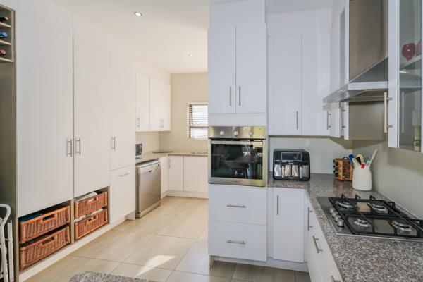 The main bedroom features a built-in dressing table, an air-conditioner, ample closet space and a modern en-suite bathroom. Bedrooms 2, 3 and 4 are well sized with built-in cupboards and share a full bathroom. Additionally, the property features two garages.