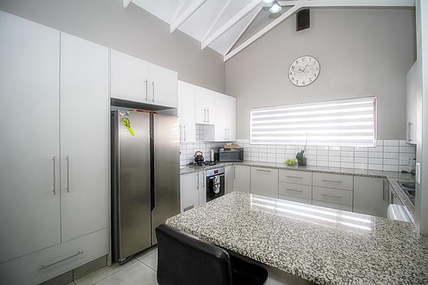 Exceptional Home at an Unmatched Price. This neat and modern townhouse is ideal for a retired couple or first-time homeowners. The open-plan living area has high ceilings which give a sense of space and adds natural light to the home. Modern kitchen with ample cupboards, granite tops and a beautiful granite breakfast bar. Two sunny bedrooms with built-in cupboards, and two bathrooms.