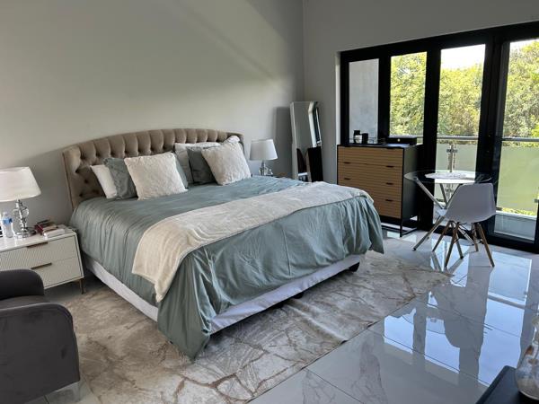 The lounge features sliding doors opening onto the outdoor entertainment area, overlooking a solar-heated swimming poolideal for year-round enjoyment. The patio is fully enclosed with canvas on all sides, allowing it to be comfortably used in all seasons, whether entertaining or relaxing.