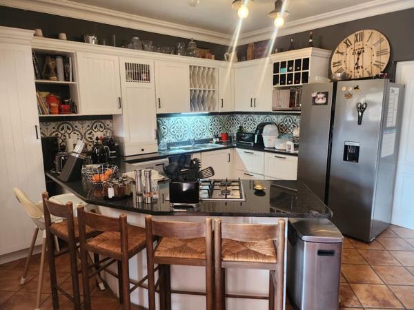 The heart of the home includes an inviting lounge and a dining roomperfect for family gatherings and relaxation, perfectly connects the modern Kitchen, leading out to covered patio with a built-in braai area You will love the linen cupboards for extra storage, double garage and the beautiful garden that creates a serene.