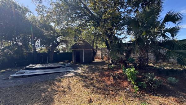 This property features a bathroom attached to a double garage, complete with its own toilet and shower. There is also a separate guest toilet located outside. The room walls and foundation are reinforced with interwoven steel rods to accommodate the future installation of two 5,000-litre JOJO tanks. Adjacent to a plunge pool (currently in need of renovation) is an untested borehole. Near the entrance gate, there is a small apiary and the DB board is housed in this area. Tall palm trees on the property are reportedly used by nesting vultures. The garden was planted with lawn two years ago but is now in need of attention. A Wendy house is included in the sale.