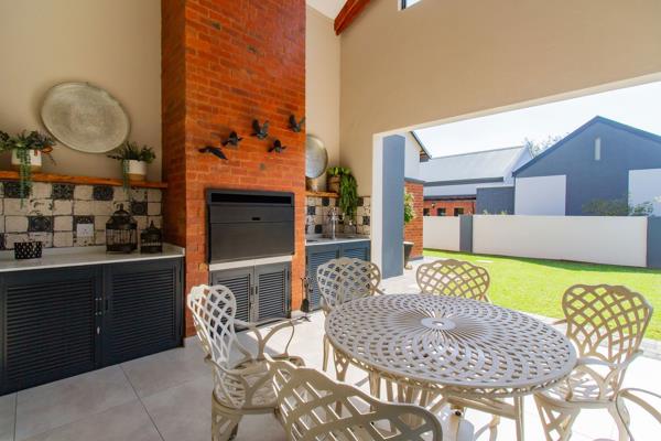 Stack doors from the dining area open to a beautiful covered patio complete with a built-in braai, additional cabinetry, and even a cleverly hidden dishwasher. This space is designed for relaxed entertaining, whether you''re enjoying sunset views, taking a dip in the sparkling pool, or stepping over to the separate braai pit in the garden for an evening under the stars. Your guests might never want to leave!