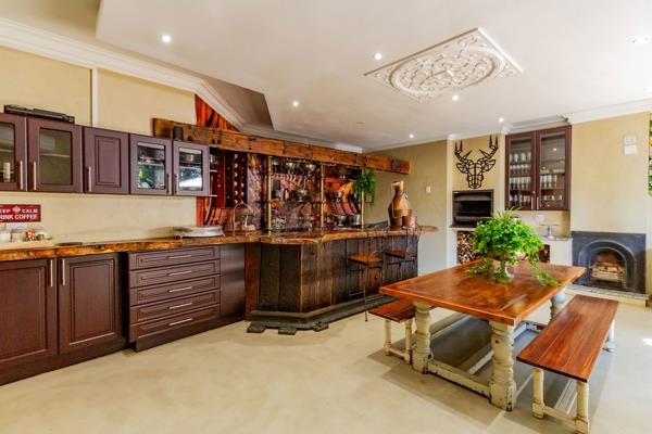 The property offers eight garages and a double carport, along with a workshop and a large storeroom. Both the roof and electrical system have been completely redone, and the home is equipped with an 8kVA Victron solar power system and a borehole with 7,500-litre storage capacity. Water heating is covered with two gas geysers and three electric geysers. All three kitchens are fitted with gas stoves for added convenience. The grounds also include two sheds, five raised compost pits, and a state-of-the-art alarm system.