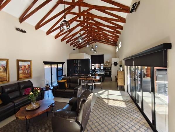 The layout and finishes were carefully curated to create a seamless flow between the stylish kitchen, living spaces, and outdoors. Enjoy a closed entertainment braai area, a sparkling pool, and bedrooms that open with sliding doors to the lush garden perfect for soaking in the serene country atmosphere.