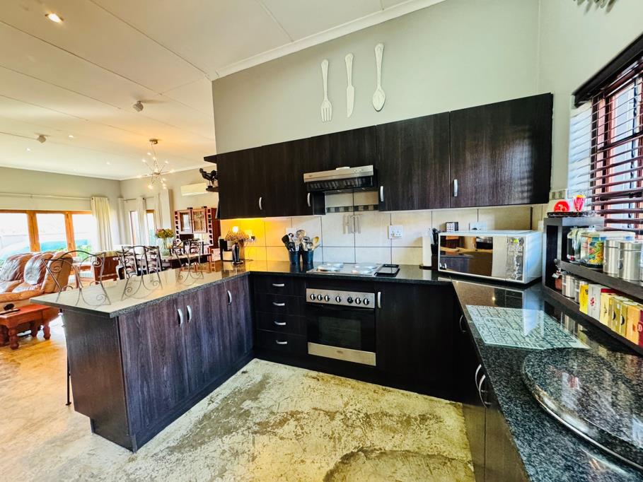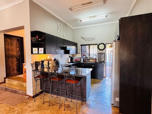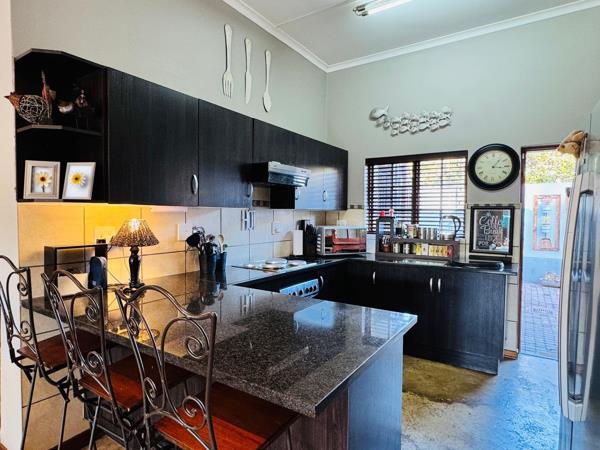 The stylish kitchen is both functional and spacious, featuring ample cupboard space and a generous scullery that keeps everyday living neat and organised.