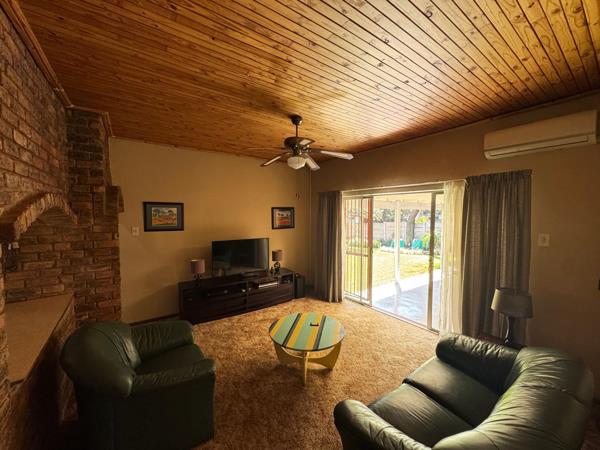 Enjoy effortless indoor-outdoor living with sliding doors opening onto a covered patio complete with a built-in braaiperfect for entertainingoverlooking a lush, established garden.