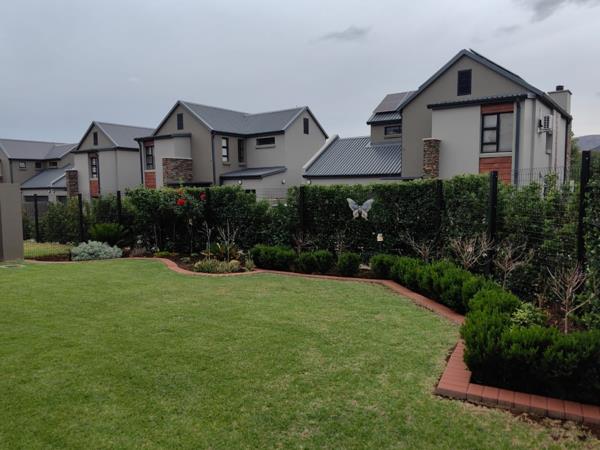 The modern kitchen is equipped with ample storage and functionality, making it an ideal space for culinary enthusiasts. Step outside through the large aluminium sliding doors to a covered patio that boasts a built-in braai area, ideal for hosting gatherings or enjoying picturesque evenings. The landscaped garden offers a serene outdoor retreat while remaining low-maintenance for your convenience.