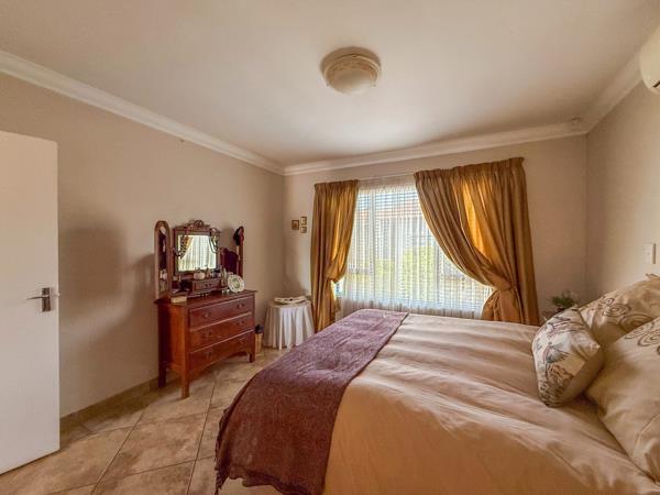 Entertainment is made simple with an enclosed braai room and a patio fitted with a louvre roof, allowing year-round gatherings with friends and family. Additional thoughtful features include a misting system, blinds throughout, and a Trellidoor for added peace of mind.