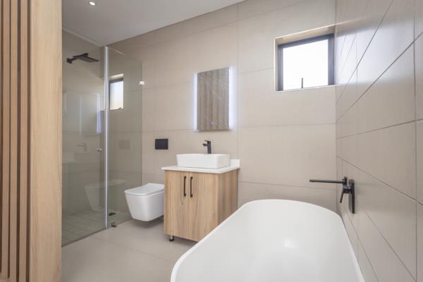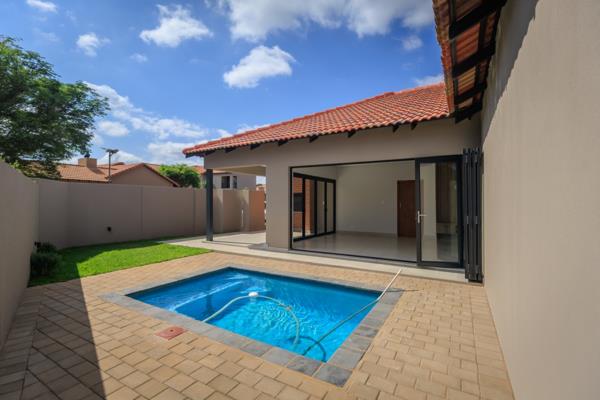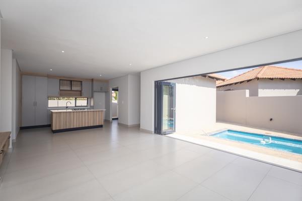 Everything in this house speaks of Safety, comfort, and style. the home is designed for easy living and offers everything for your family. the house has three spacious, well lit bedrooms. The main bedroom features a modern, stylish en-suite bathroom. the second and third bedroom shares a similar looking bathroom. A stylish, open -plan and well laid out kitchen with scullery boasts with heigh end finishes which flows into a dining and living space. the living area opens up to a covered patio area with a buily-in braai right next to sparkling swimming pool and small garden.