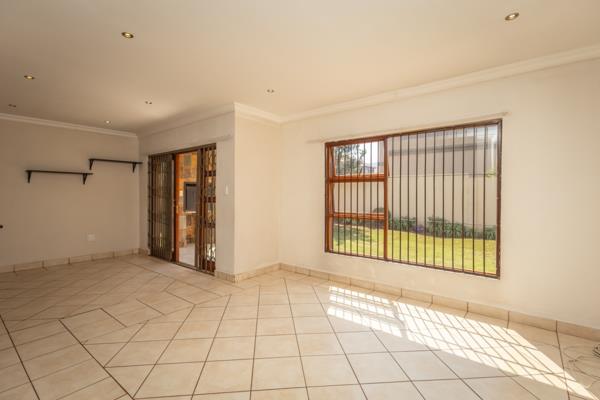 The open-plan kitchen is well laid out, and seamlessly flows out to a covered patio with a built-in braai, ideal to entertain your family and friends in a large, well maintained, spacious private garden.