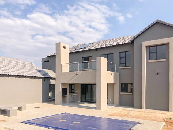 Boasting four expansive, all-ensuite bedrooms, this home ensures both privacy and comfort for every member of the household. A thoughtfully placed guest suite is located on the ground floorjust off the welcoming entrance hallwith a sliding door opening directly onto the sparkling swimming pool and landscaped garden, offering an inviting space for visitors or extended family. The opposite wing of the entrance flows into an expansive open-plan living and dining area, anchored by a sleek, modern kitchen complete with a separate scullery. Entertain effortlessly from the covered patio with built-in braai, overlooking the garden and pool area.