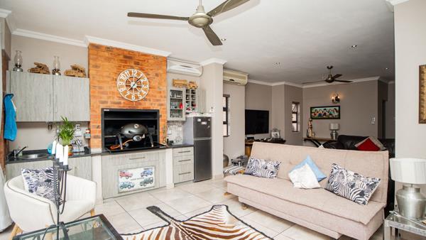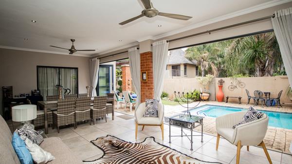 Upon entering, you''ll be struck by the generous room sizes. The main floor includes a cozy lounge, a dining area, and a family room complete with a built-in braai. Stacking doors lead out to a patio that overlooks a stunning pool, perfect for entertaining or relaxing. The main bedroom boasts high-pitched ceilings and a sliding door connecting to the family room, along with a walk-through closet that leads to a luxurious en-suite bathroom. The second bedroom has direct access to the front garden, making it an ideal space for a home office or extra bedroom. A convenient guest toilet with a shower further enhances the practicality of the layout.