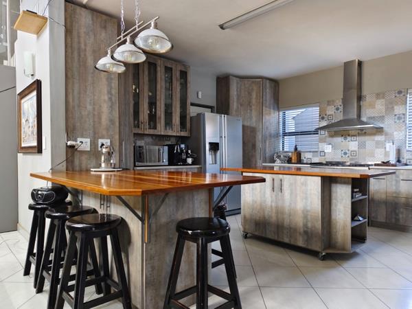 The main house boasts five generously sized bedrooms, each featuring a lavish en-suite bathroom for added privacy and convenience. The gourmet kitchen, equipped with stylish wooden top finishes, includes a practical scullery to enhance your cooking experience.