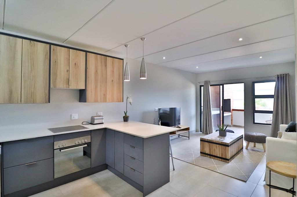 This first-floor apartment features two spacious bedrooms main bedroom en-suite, 2 modern bathrooms, an exquisite open-plan kitchen with space for a double door fridge and two appliances and include a water purifying system. The balcony is enclosed with aluminium sliding windows and fitted with a built-in braai.