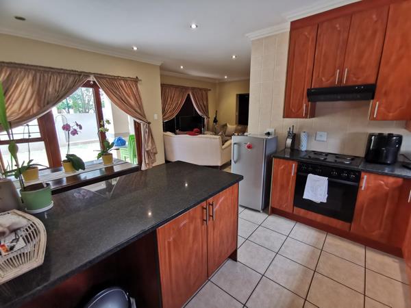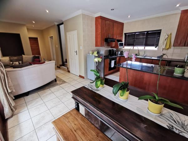 Discover this charming 2-level home, perfectly situated within a secure and affordable estate. This delightful residence blends comfort with breathtaking natural beauty, making it the ideal sanctuary for families and pet lovers alike. This property is a real jewel, with modern living areas and roomy, luxurious bedrooms. On the ground level is a comfortable double automated garage with direct access into the open plan kitchenliving area to your undercover built-in braai with patio.