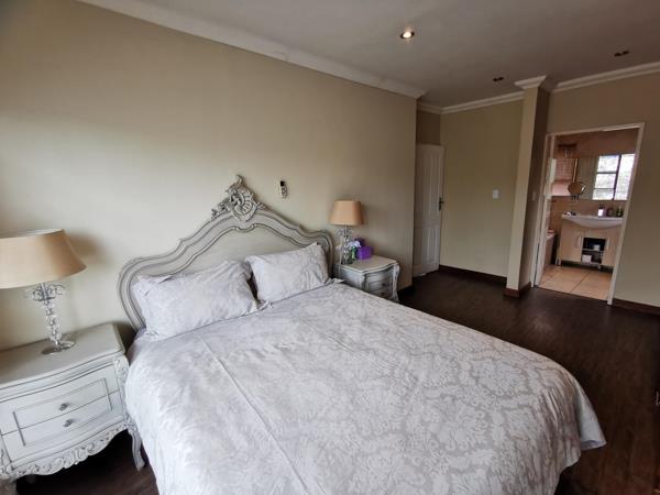 Meandering upstairs are 3 bedrooms with main on suite and a guest bathroom. A huge tv lounge, could even be a 4th bedroom or even a hobby room. Thus making this space anything you would need. A splash pool for those blazing summer days, a spacious garden for your pets, remembering to bring along your green fingers.