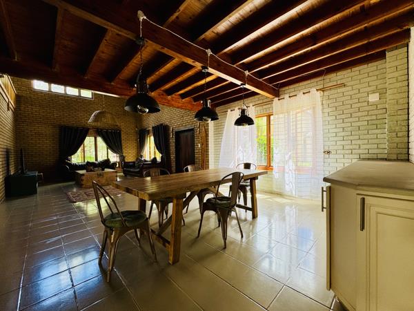 The homes tile flooring and plastered exterior give it a clean, modern feel, while the thatched roof adds a touch of rustic charm. Outside, youll find a spacious gardenperfect for kids, pets, or simply enjoying the outdoors. And when its time to entertain, the fire pit and boma are ready to set the stage for unforgettable evenings under the stars.