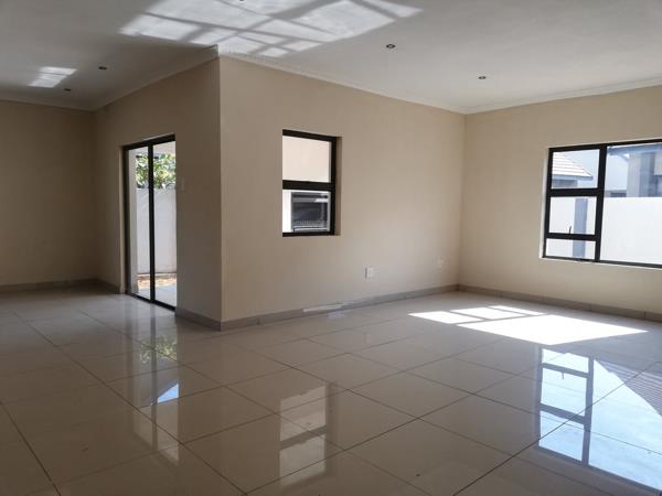 The open-plan kitchen in this opulent 4-bedroom, 3-bathroom home in Melodie''s Symphony Park Complex smoothly integrates the dining room and kitchen areas with a scullery.