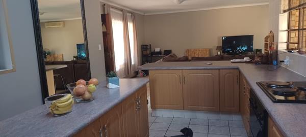 This home offers an open-plan lounge and dining area that connects to the kitchen, featuring a breakfast nook and separate scullery.