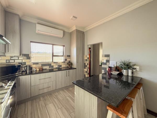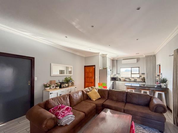 Step inside to discover generous open-plan living areas that seamlessly connect the lounge, dining space, and kitchen creating the perfect environment for everyday living and entertaining. Sliding doors open to a covered patio, overlooking a neat and low-maintenance garden your own private outdoor haven. The main bedroom is light-filled and features built-in cupboards and an en-suite bathroom. Two additional bedrooms are well-sized and share a full bathroom, ideal for children or guests.