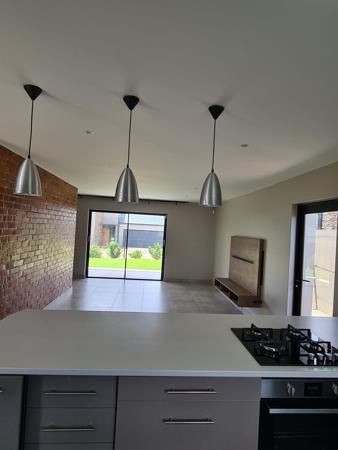 Double storey home with modern open plan kitchen, lounge and dining room downstairs. Kitchen with fitted cupboards, gas stove and quartz tops. Lounge opening onto patio with build in braai, overlooking the garden and Magaliesberg Mountains.